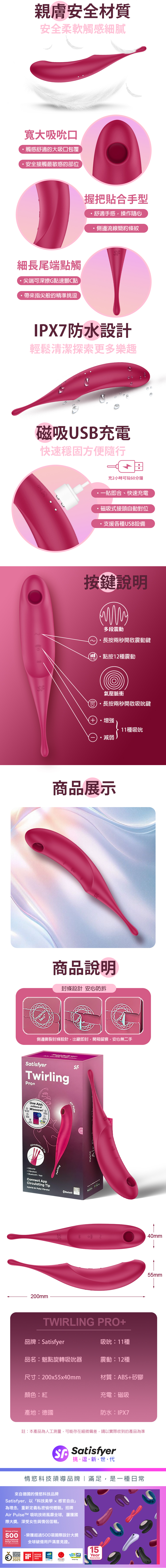 品名:Satisfyer|Twirling Pro+|魅點旋轉吸吮震動器 紅